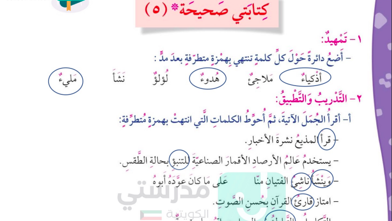 حل درس الهمزة المتطرفة على الألف و الواو و الياء للصف الرابع المنهاج الكويتي