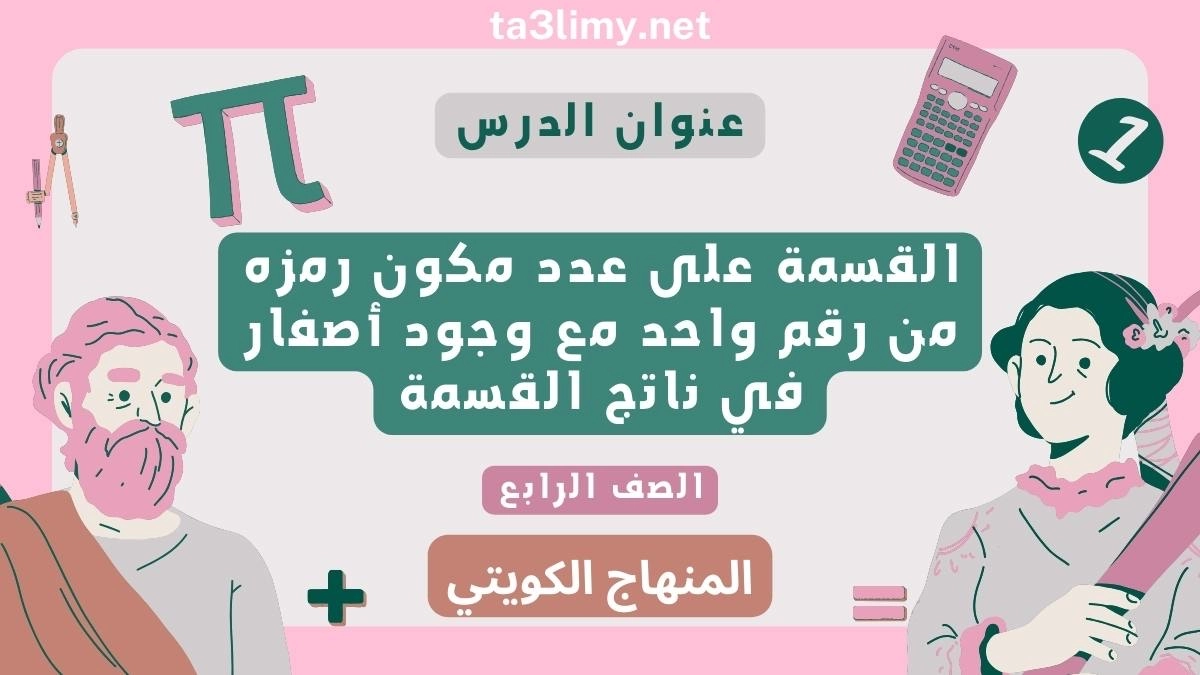 حل درس القسمة على عدد مكون رمزه من رقم واحد مع وجود أصفار في ناتج القسمة للصف الرابع المنهاج الكويتي