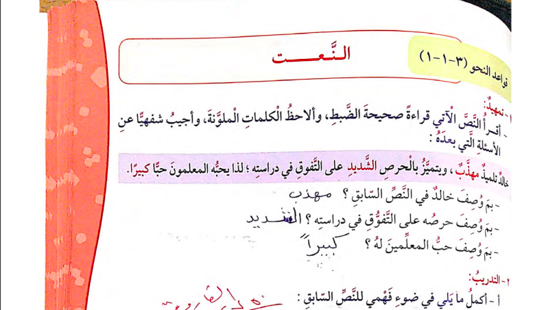 حل درس النعت للصف الخامس المنهاج الكويتي