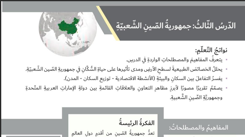 تحميل حل درس جمهورية الصين الشعبية للصف السادس المنهاج الاماراتي