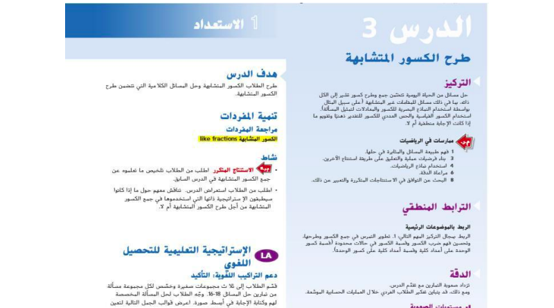 تحميل حل درس طرح الكسور المتشابهة للصف الخامس المنهاج الاماراتي